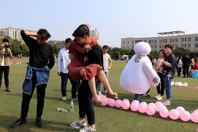 此次女生节活动设置了“蒙眼喂食”和“占领阵地”两个小游戏,只要参与和完成游戏就可以获得相应的小礼品。其中有一对小情侣在参与活动时十分积极,男生郑凯文说道:“我们认为这个活动举办得很有意义,它给我们的大学生活留下了不一样的记忆,这些小礼物也算是给我们的一种回忆。”