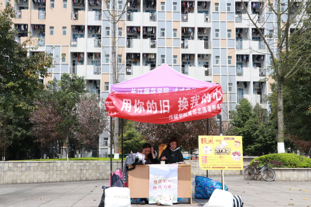 为了宣传传媒学院“受资助贫困大学生回报学校,回报社会”这一品牌,3月15日,长江师范学院传媒学院青年志愿者服务团于北苑小东门和南苑食堂开展“用你的旧,换我的心”旧物再利用活动。