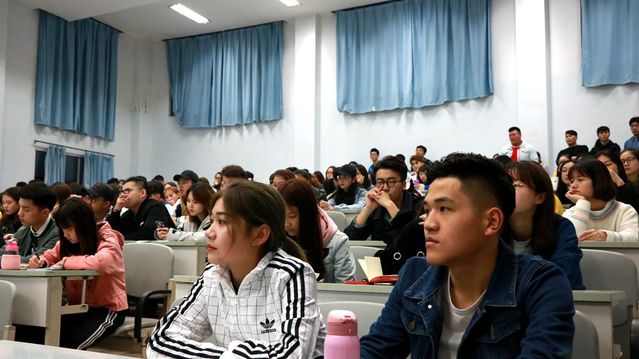 会议一开始,由于干部干事人数较多,导致阶梯教室位置不够。大家在组织部部长许心如的组织下发挥了“干部让干事,男干事让女干事”的谦让精神。