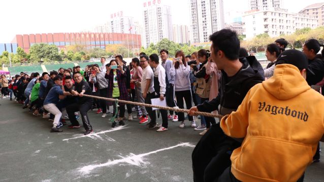 “一二,一二,加油!”闭幕式结束后,同学们阵阵加油声传来,原来是传媒学院的老师与学生们在主席台前方一同参与了拔河比赛。比赛中,老师与各位同学齐心协力、紧密配合。拔河比赛结束后,学院还为获胜方准备了奖品。师生拔河比赛不仅拉近了老师与同学之间的关系,更有利于培养师生之间的默契。