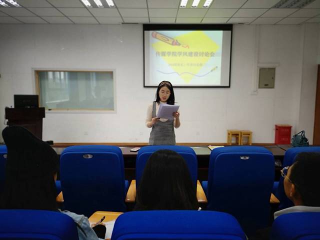 黄智老师从“加强教育引导,提高思想认识;严格制度管理,保障建设实效;树立先进典型,发挥榜样力量”三个方面向全体学生解读了《传媒学院学风建设工作方案》。三位系主任从专业成长角度对同学们提出了学习要求。