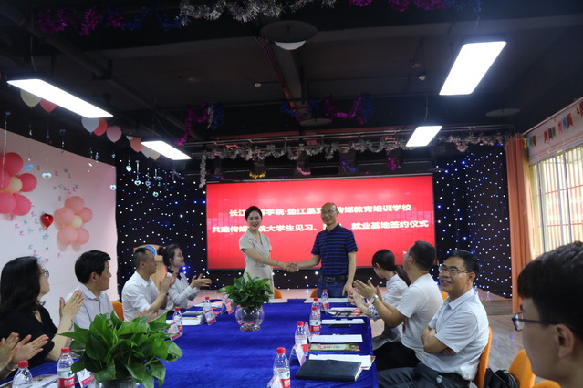 (通讯员:王婷婷)2019年4月24日,长江师范学院传媒学院院长韦济木教授带队到重庆垫江亚东传媒培训学校与其签署见习、实习、就业基地合作协议。
