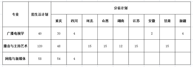 【2020年高考招生】传媒学院2020年分省招生计划