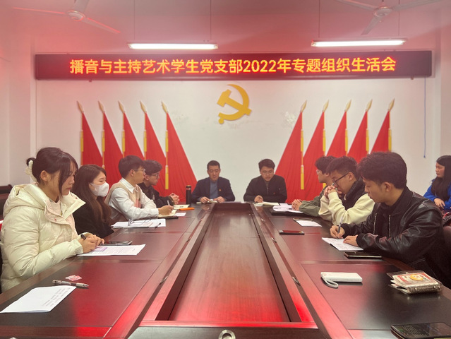 (通讯员:李祖冰 萧珺予 鲁钰彤 罗馥昕)3月6日晚七点,传媒学院播音与主持艺术学生党支部在格致楼2318会议室召开2022年度组织生活会和开展民主评议党员。传媒学院党委副书记杨戈军、播音与主持艺术学生党支部书记简金雄出席会议,支部所有党员参加。会议由简金雄同志主持会议。