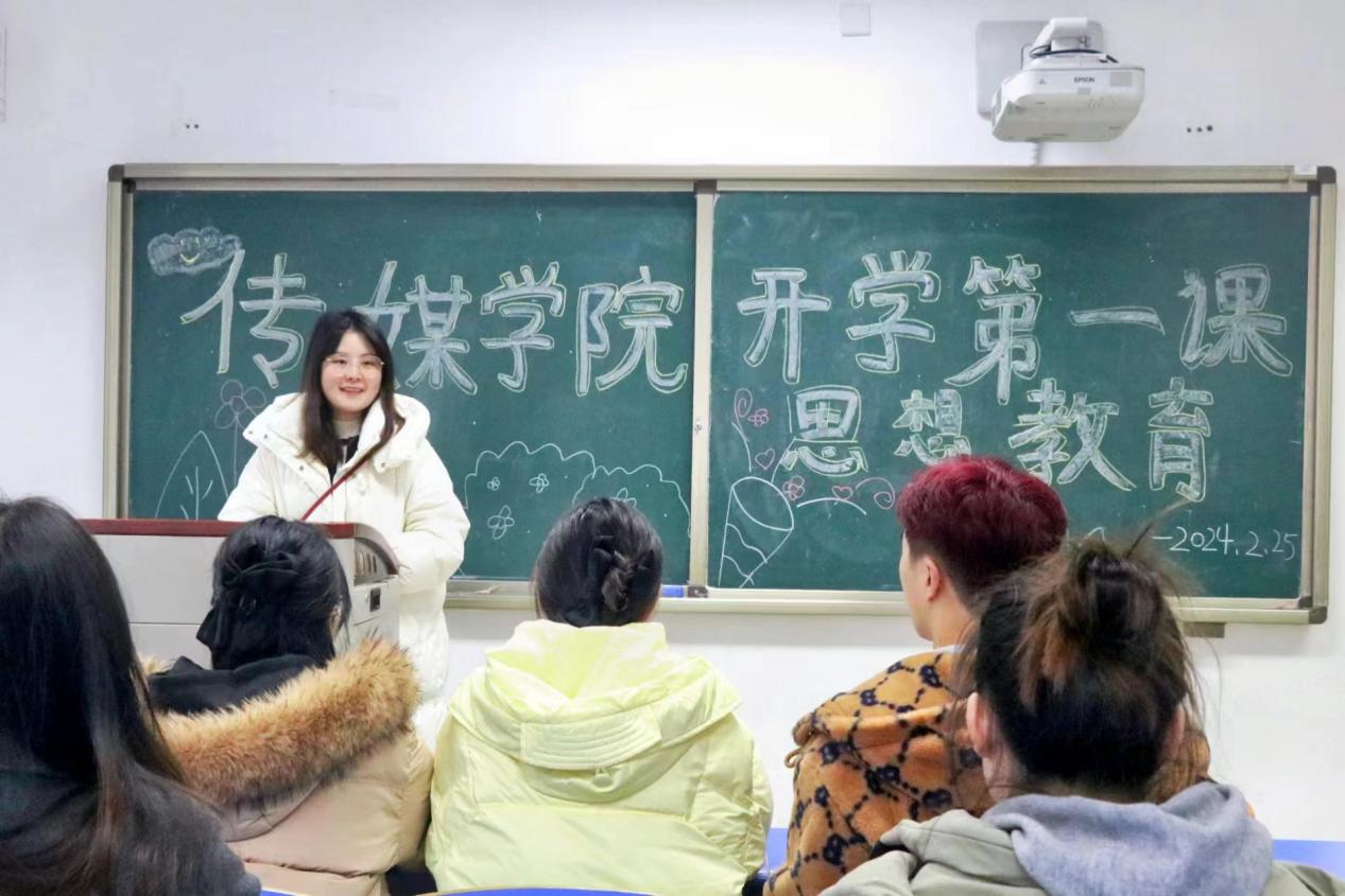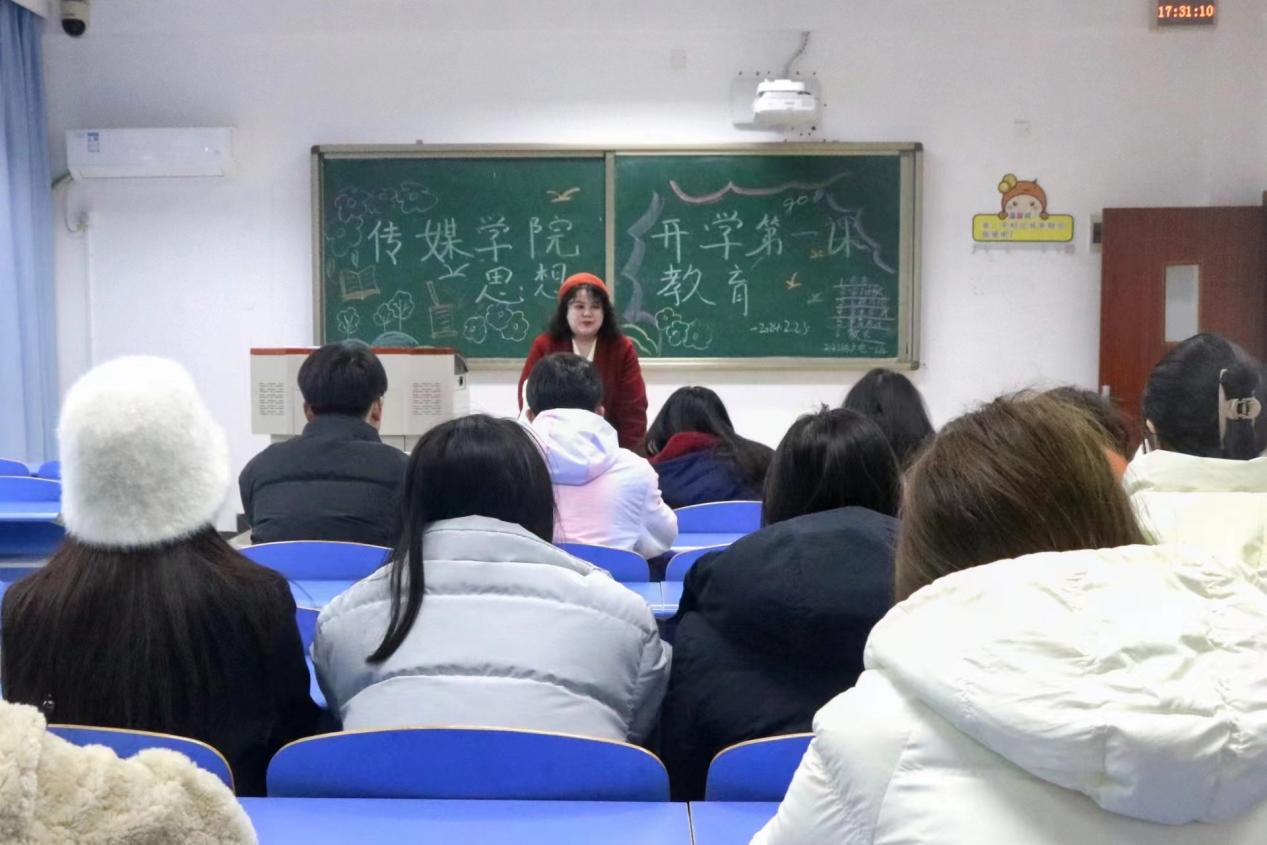 (通讯员:张彤 林欣颜 李婉玉)新学期、新目标、新征程。为了养成更好的学习习惯,培养学生自主的学习能力、自觉遵守纪律意识,抓紧新学期的学习进度。225日,传媒学院在崇礼楼开展开学第一课思想教育主题班会活动。传媒学院团委副书记王雯、2021级辅导员甘元琴、2023级辅导员简金雄担任本次活动主讲人,传媒学院全体同学共同参与。