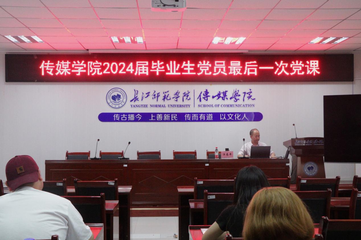 (通讯员:成俐)为给即将“启航”的毕业生党员们备好红色“精神行囊”,激励全体毕业生党员以饱满的青春热情和良好的精神风貌踏入人生新征程。6月6日13时,传媒学院于格致楼2308会议室开展2024届毕业生党员最后一次党课。此次党课由传媒学院党委副书记、副院长汪志平主讲,全体毕业生党员参加。
