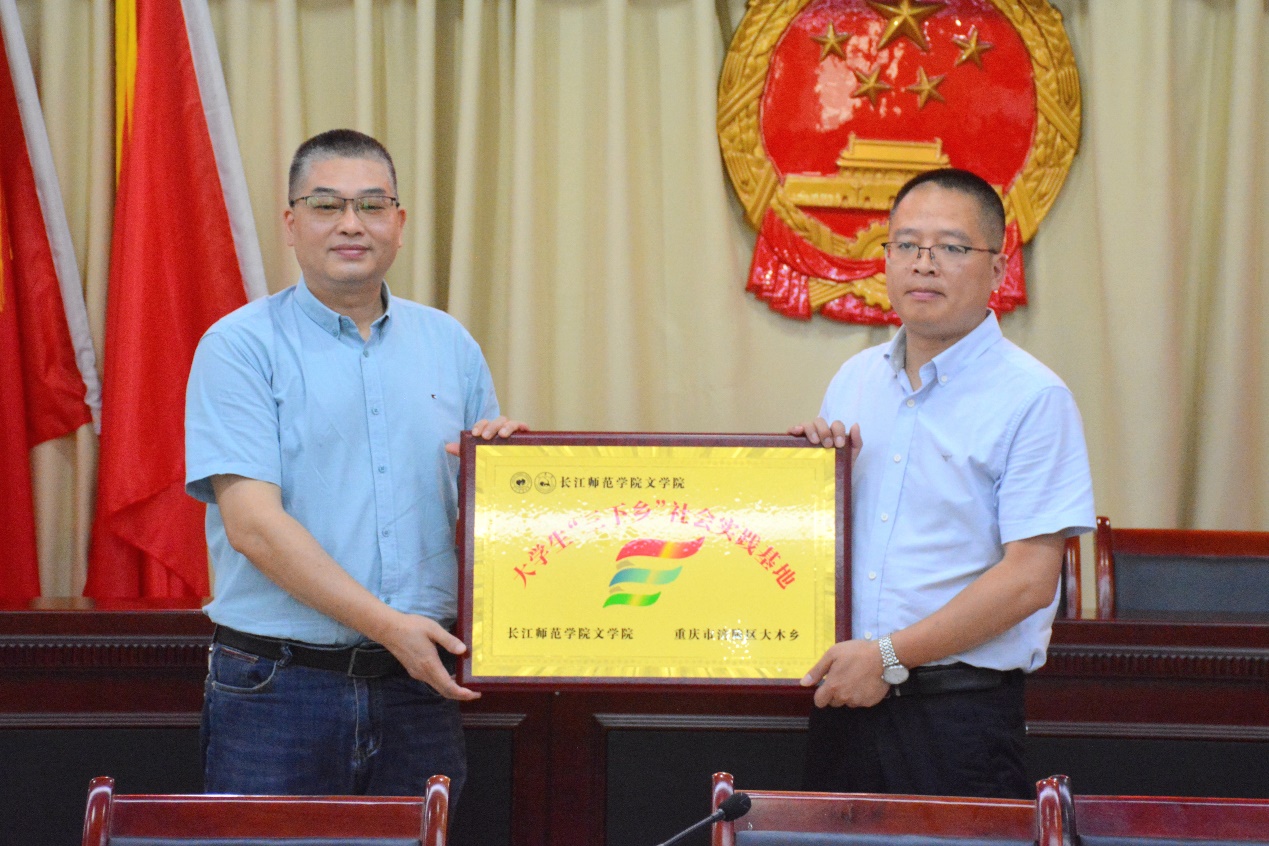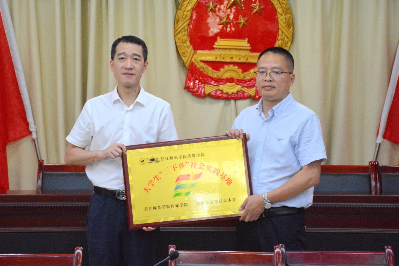 会上,本着优势互补、相互支持、携手共赢的原则,大木乡党委委员、组织委员董安仁与文学院党委书记谢诗茂、传媒学院党委副书记杨戈军进行“三下乡”社会实践基地签约,并由龙书记授予长江师范学院文学院、传媒学院大学生“三下乡”社会实践基地牌匾,建立起双向服务协作关系。