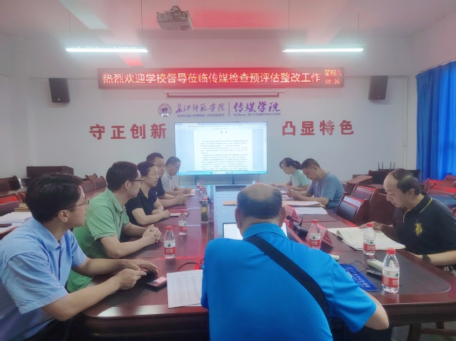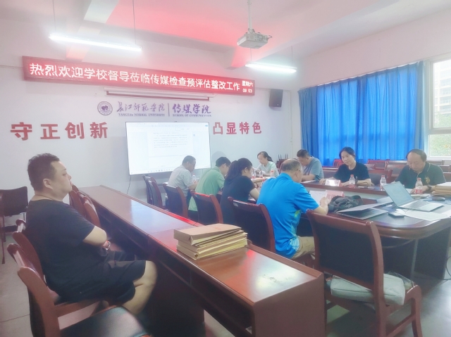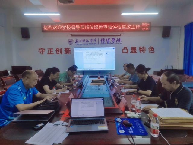 为贯彻落实《长江师范学院新一轮本科教育教学工作审核评估工作方案》,确保审核评估工作高质量完成,8月10日上午,长师评估中心主任谭永忠、教务处副处长刘筱,学校督导检查组贺国权、雷继红、朱斌莅临传媒学院开展审核评估必查必看材料检查验收工作。传媒学院副院长冉明仙,实践教学中心主任张金龙、网新系主任张建雄、广电系主任贾森,代理办公室负责人简金雄及教学秘书李奇骏和邓金秀参加验收会议。