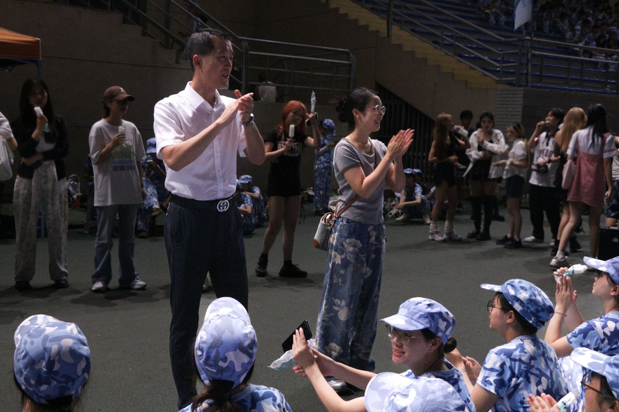 随着领导们的到来,现场气氛变得热烈,同学们以饱满的姿态迎接并响起了掌声。杨书记首先向新生们致以亲切的问候,对同学们的精神面貌给予了高度评价,将冰棍依次分发至新生手中,给同学们送去了关怀和冰凉。