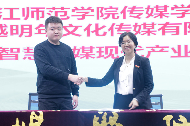 紧接着,长江师范学院传媒学院副院长冉明仙与重庆越明年文化传媒有限公司总经理张云天正式签署了共建智慧传媒现代产业学院的合作协议。这标志着传媒教育与传媒产业的深度融合,是响应国家创新驱动发展战略,培养新时代传媒人才的重要举措。它将为长师传媒学子搭建起一个理论与实践相结合、创意与技术并重的广阔舞台,为智慧传媒领域注入新的活力与可能。