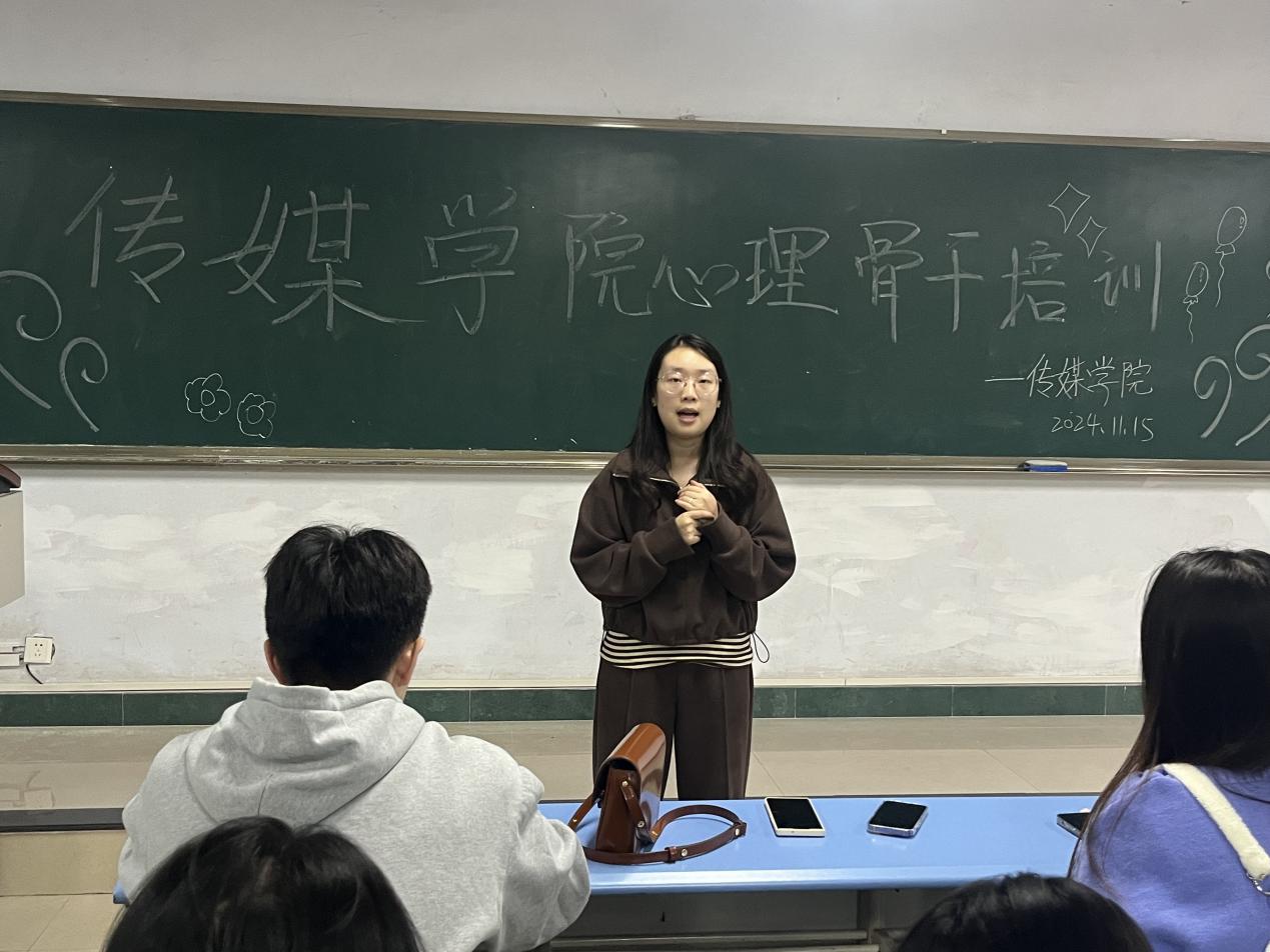 近日,为了进一步加强心理健康教育与服务工作,提升心理工作骨干的专业素养和实践能力,传媒学院特于11月15日在正心楼109举办了一场心理骨干培训会。此次培训由传媒学院2024级辅导员谭喻老师主持,吸引了众多关心心理健康教育的师生参与。