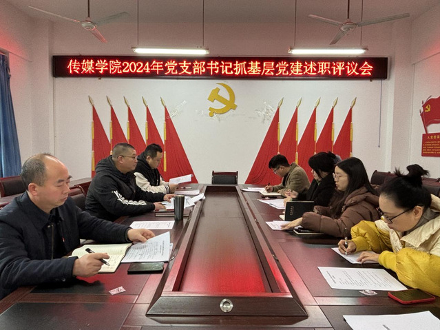 为深入贯彻落实习近平新时代中国特色社会主义思想和党的二十大及二十届二中、三中全会精神,根据《中共长江师范学院委员会关于开展2024年度基层党组织书记抓基层党建述职评议考核工作的通知》精神,全面总结过去一年党建工作成果,明确未来发展方向,进一步提升基层党建工作质量,1月8日,传媒学院党委于格致楼2318会议室召开2024年党支部书记抓基层党建述职评议会。会议由传媒学院党委书记谢诗茂同志主持,党委委员、各党支部书记出席此次会议。