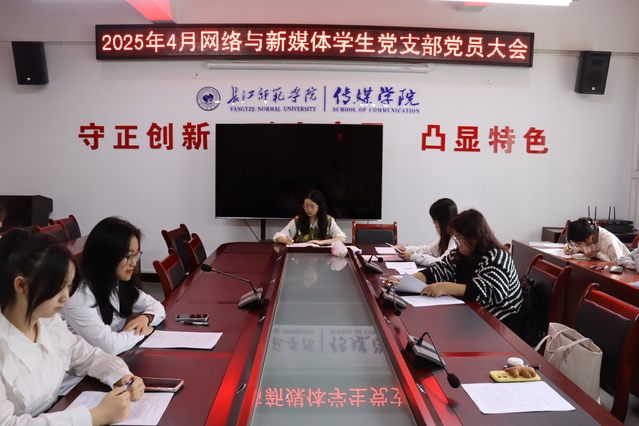 为严格落实党员发展工作要求,切实加强党员队伍建设,进一步充实学生党支部的新生力量,4月23日18时20分,传媒学院网络与新媒体学生党支部于格致楼2318会议室开展了2025年4月党员发展大会,会议由支部书记谭喻主持,网新支部全体党员参加此次会议。