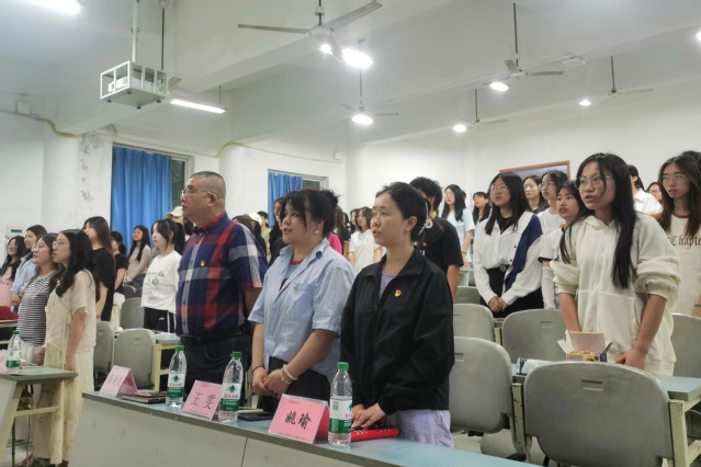 为进一步加强党组织建设,提升学院预备党员和入党积极分子的党性修养、理想信念、政治觉悟,5月12日晚6点30分,传媒学院于格致楼03教室举行了第二十七期党校培训开班仪式。传媒学院党委书记谢诗茂,广播电视学学生党支部书记王雯、副书记姚瑜,网络与新媒体学生党支部书记谭喻,播音与主持艺术学生党支部书记甘元琴参与本次活动。传媒学院全体入党积极分子和预备党员参加此次培训。仪式由2023级播音与主持艺术学生党支部预备党员姚思颖同志主持。