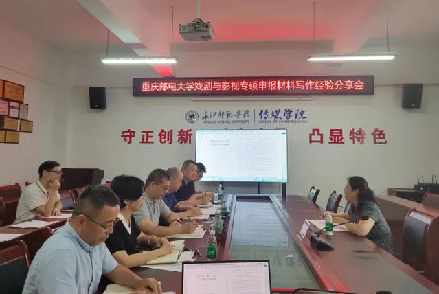 为推进戏剧与影视专业硕士学位点申报工作,提升申报材料质量,2025年6月6日,传媒学院在格致楼2313会议室特邀重庆理工大学传媒艺术学院副院长王睿分享戏剧与影视专业硕士申报材料写作经验。传媒学院院长冉明仙、党委书记谢诗茂、副院长汪志平、实践教学中心主任张金龙、学工办主任王雯、各系主任及副系主任共同参与了此次会议。
