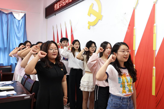 最后,由谭喻同志领誓,支部全体党员同志共同重温入党誓词。全体与会党员面向鲜红的党旗,高举右拳,庄严宣誓,重温对党忠诚的誓言,坚定对党的信仰。