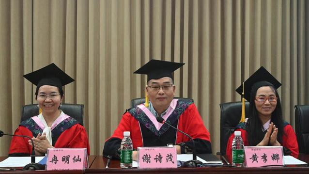毕业典礼在庄严的国歌声中拉开帷幕。谢诗茂书记宣读校级、院级优秀毕业生表彰决定,学院领导为优秀毕业生颁发证书并赠送纪念品,表彰其在校期间的优异表现。谢诗茂书记在致辞中深情寄语,希望毕业生秉持 “传古播今,上善新民,传而有道,以文化人” 的院训精神,以勤勉和包容面对未来挑战。