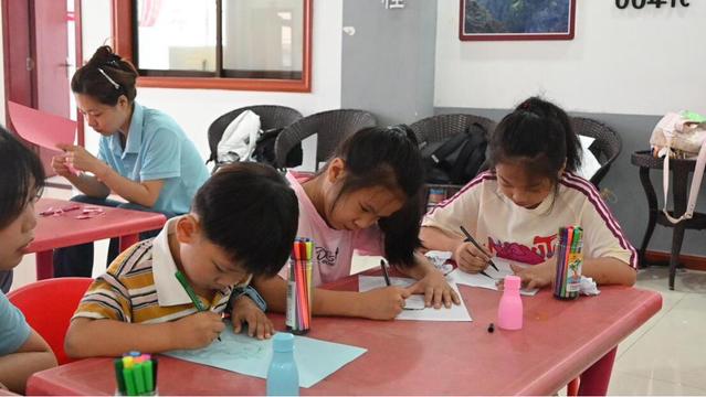 在教学现场,志愿者们组织开展了美术手工、讲红色故事和制作中药香囊的特色课程。孩子们通过美术手工锻炼了动手实践能力,提升了个人的专注力和想象力;在讲红色故事活动中,志愿者刘雯汐给孩子们讲述了抗日战争时期的红色经典故事《鸡毛信》,引导孩子们学习英模精神,不怕困难、勇敢斗争;制作中药香囊环节,志愿者们带领孩子们通过触摸、嗅气味等方式认识了许多中药材。