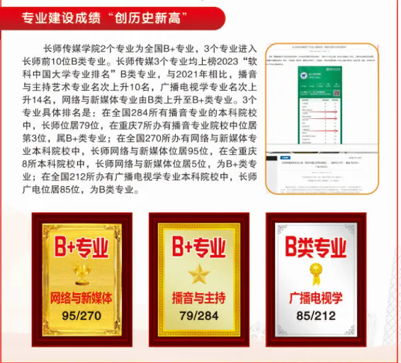 喜讯!长师传媒学院2个专业为2023“软科中国大学专业排名”B+专业,1专业B类专业